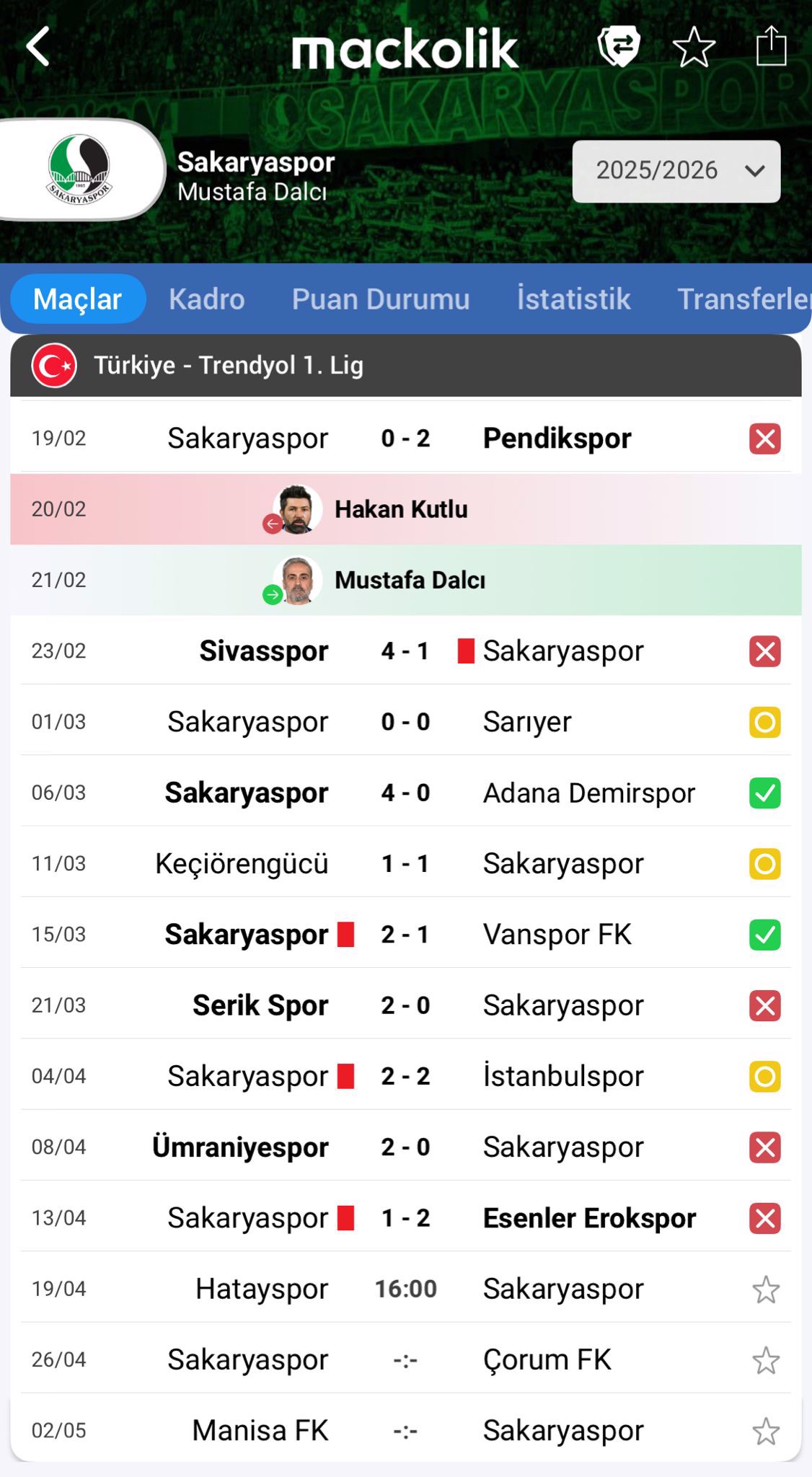 4 sezon aradan sonra 2. Lige düşen Sakaryaspor, bu sezon 35 maçta 8 galibiyet, 9 beraberlik, 18 mağlubiyet alarak 33 puan topladı.